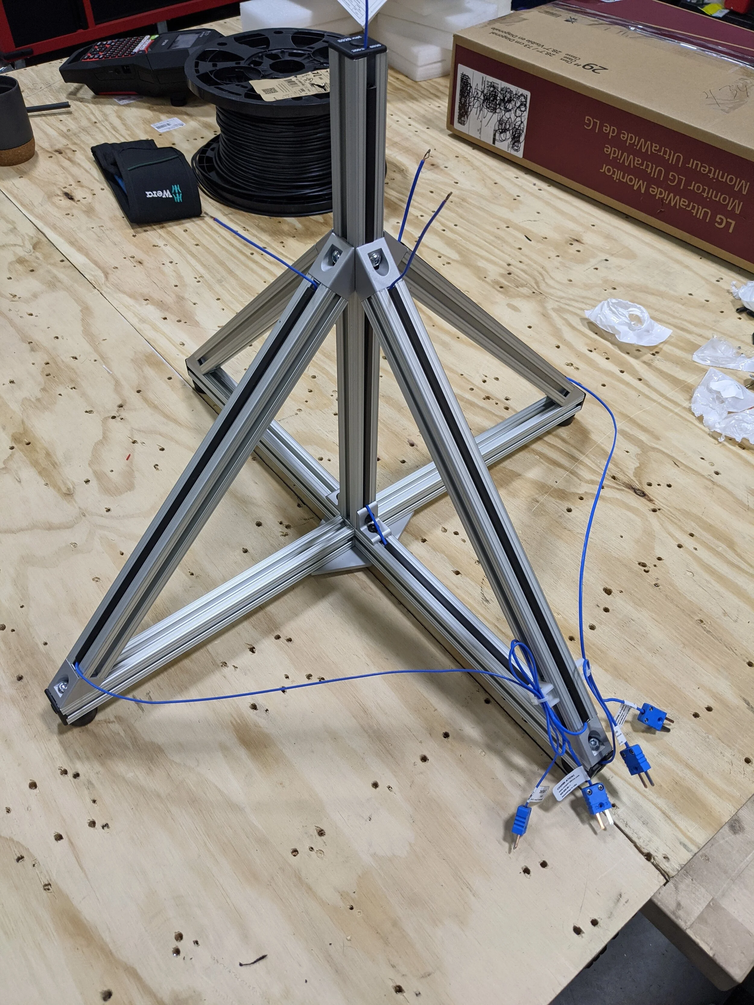 Built custom mobile data acquisition (DAQ) stand using 80/20 t-slot aluminum extrusion for mounting of electrical control enclosure, keyboard platform, and monitor