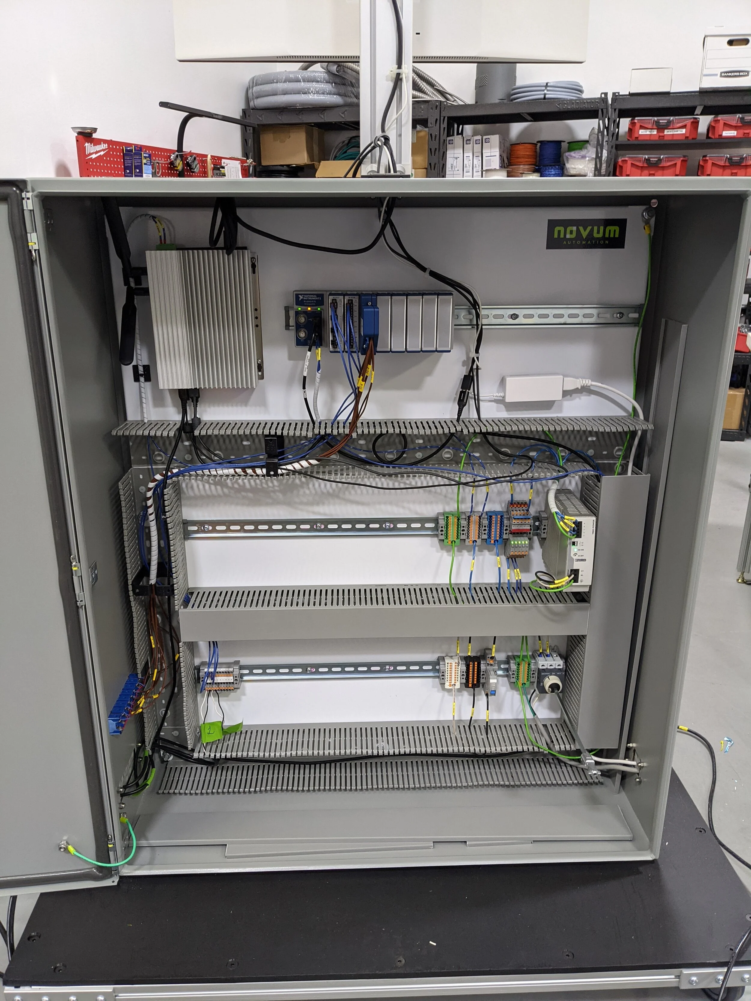 Designed and wired an electrical control panel for acquiring precision voltage and current measurements using NI’s CompactDAQ chassis and C Series modules