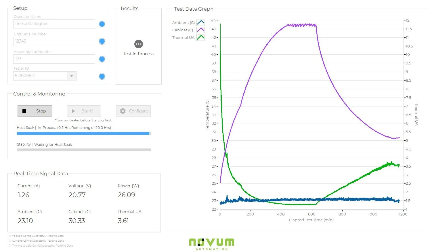 Novum designed, developed, tested, and shipped a turn-key automated data acquisition system for acquiring thermal chamber test data, storing data, and post-processing in a highly efficient manner.